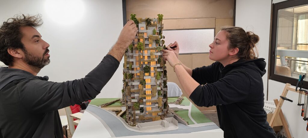 La maquette est un outils de conception indispensable pour l’étude et la présentation d’un projet. Véritable travail artisanal, la maquette permet de retranscrire en volume les plans des architectes à différentes échelles. Représentation la plus fidèle, elles permettent d’avoir une vision d’ensemble du projet et d’appréhender au mieux les volumétries. La maquette est un moyen de réagir rapidement et avec efficacité au programme imposé.