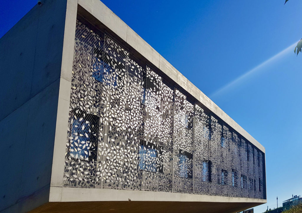 Alco 2 est le site du département de l’Hérault, les travaux réalisés par Midi 3D Coupe ont été les façades en maille Jakob avec leur décorations en bois flotté, acier thermolaqué, Inox poli brillant.